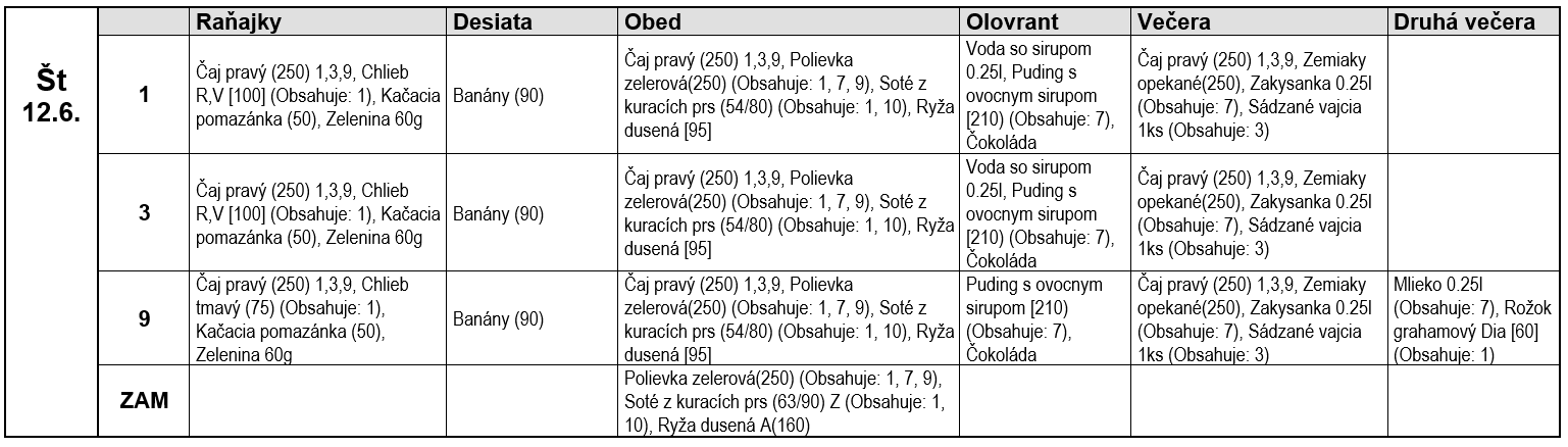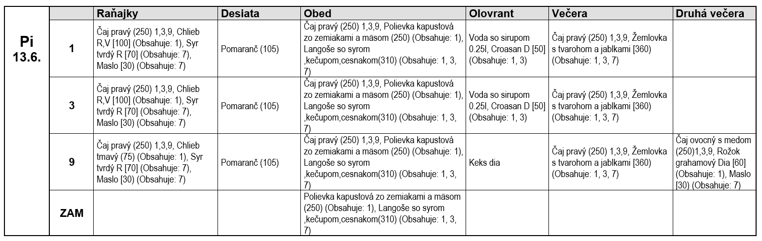 1. Obilniny obsahujúce lepok 2. Kôrovce 3. Vajcia 4. Ryby 5. Arašidy 6. Sójové bôby 7. Mlieko vrátane laktózy 8. Orechy 9. Zeler 10. Horčica 11. Sezamové semená 12. Oxid siričitý a siričitany 13. Vlčí bôb 14. Mäkkýše